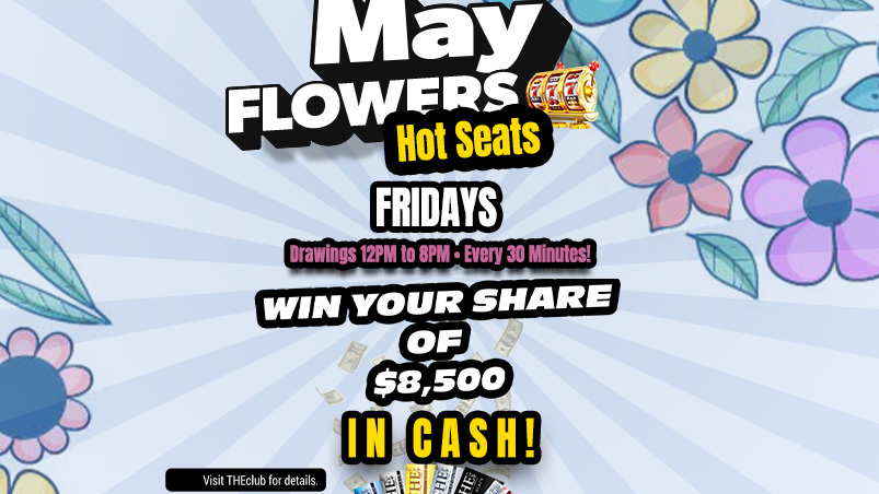 Fridays – March 6, 13, 20, 27 Seventeen (17) random drawings will take place $100 Cash Prize Drawings held from 12pm-8pm! Participants must be actively playing with their club card to participate, one (1) winner every half hour! Participants can only win once per day.